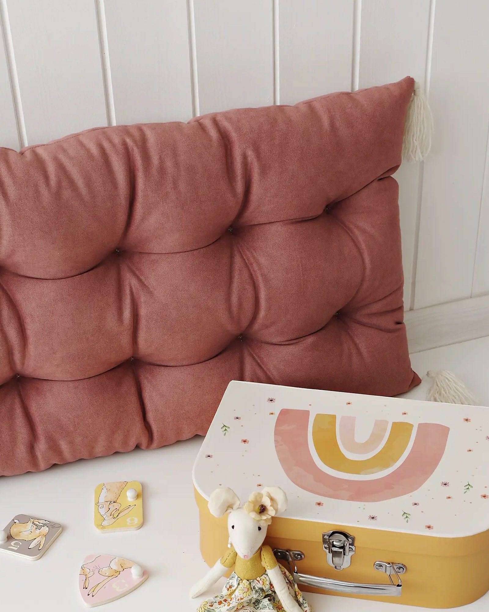 Proper growth requires not only a place for active play involving movement, but also a space intended for healthy rest. The cushion for the rocker is a type of mattress resembling a pillow; it adapts perfectly to the body’s shape and helps keep the spine in the correct position. It contains no springs or foam. Instead, it is made exclusively of compacted, clean, and environmentally friendly cotton. This cushion has been designed specifically with the rocker’s dimensions in mind, but it can also be used in other settings. It can easily be placed inside a teepee, on a carpet, or on a sunny terrace, providing your child with a peaceful spot for reading or an afternoon nap.