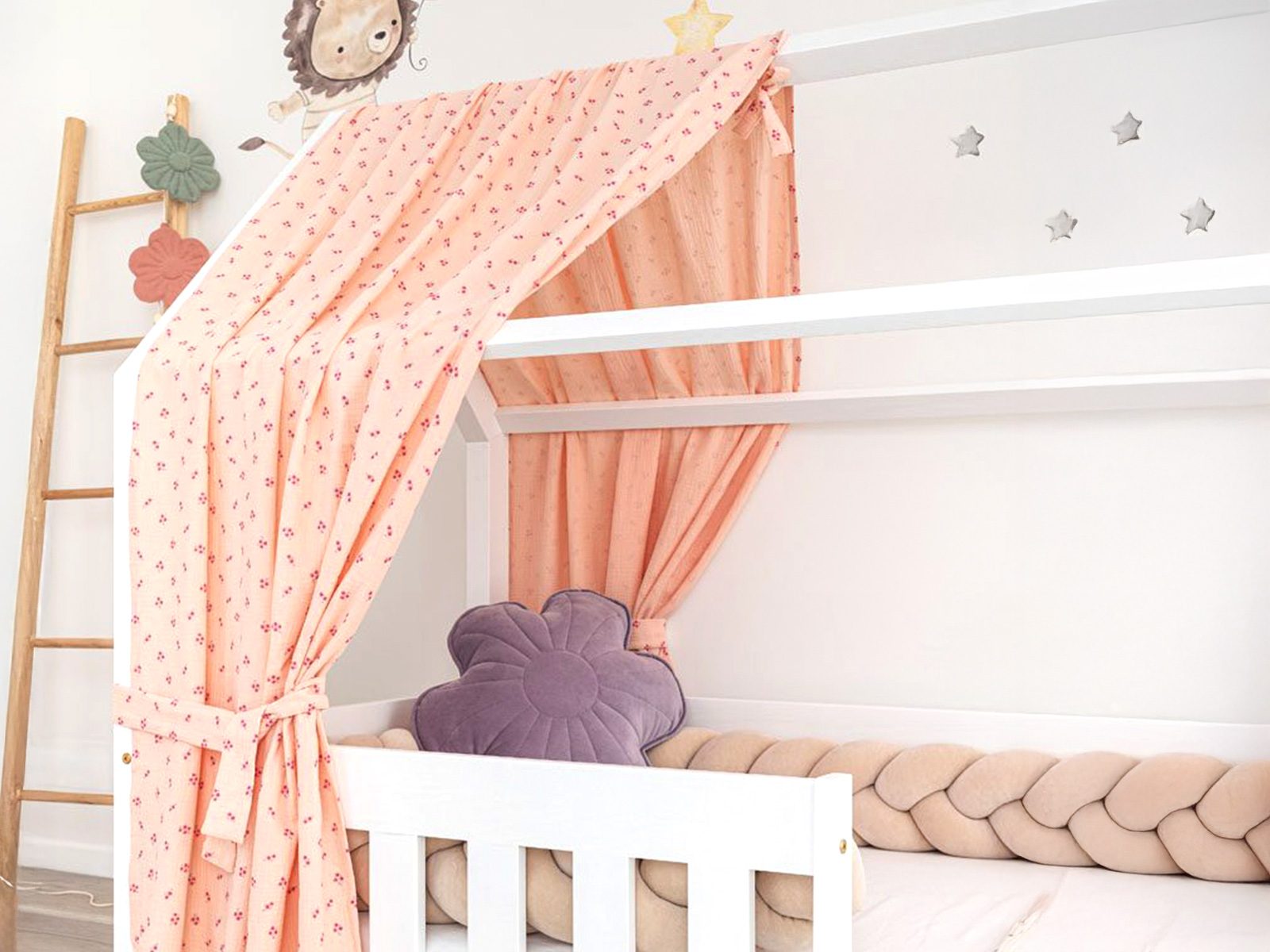 Meet our top model of the house bed. At night, Meli will provide your child with a safe place to sleep and, during the day, it will become a place to play and relax. This model offers the option of mounting the front roof beam (or not) according to your needs. This allows you to have a full roof or an open space at the front to make it easier to climb into the cot.