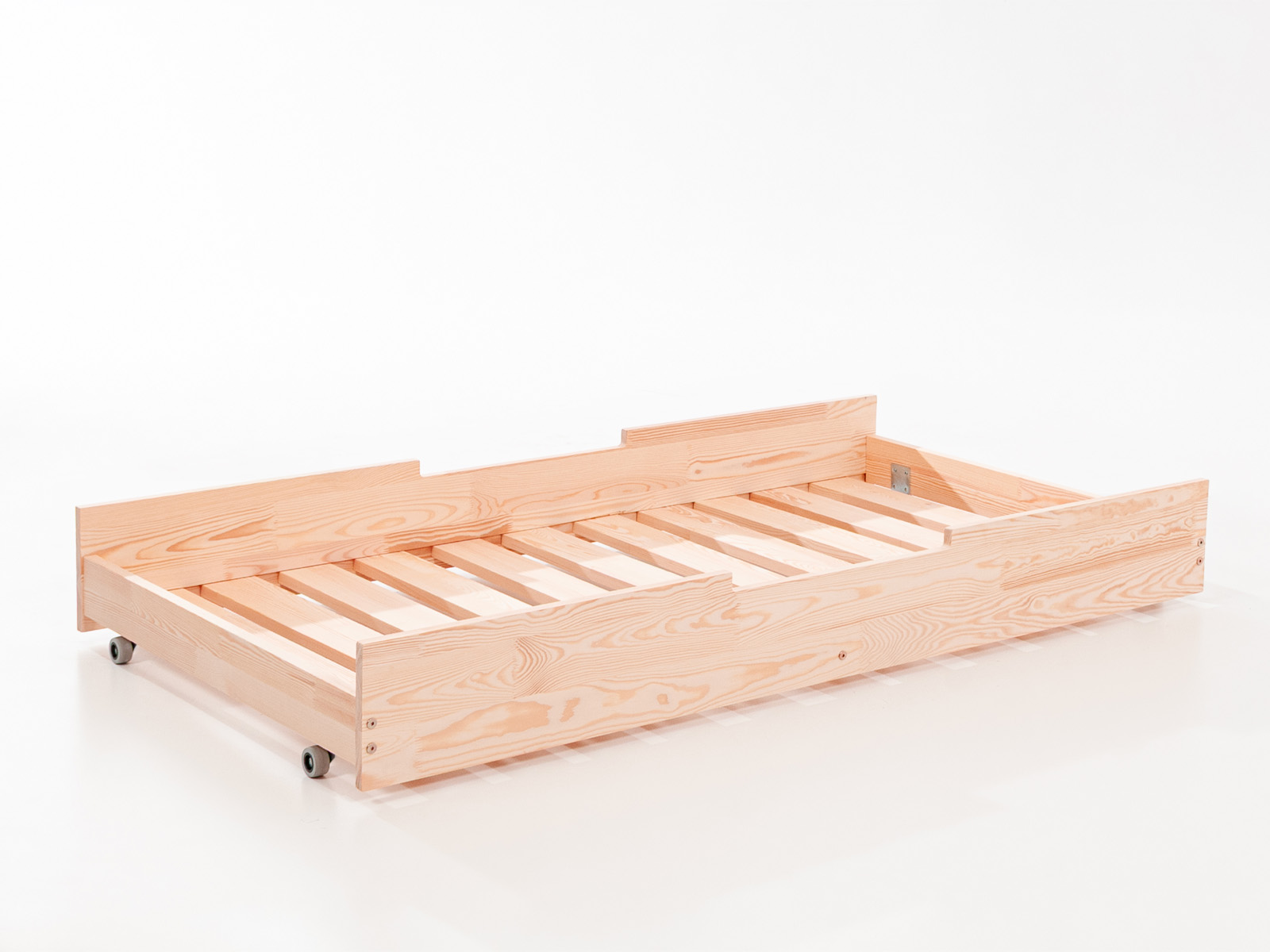 - for beds with a width of 120 cm and 140 cm, the drawer is narrower due to a central reinforcement bar, so it works best as storage.